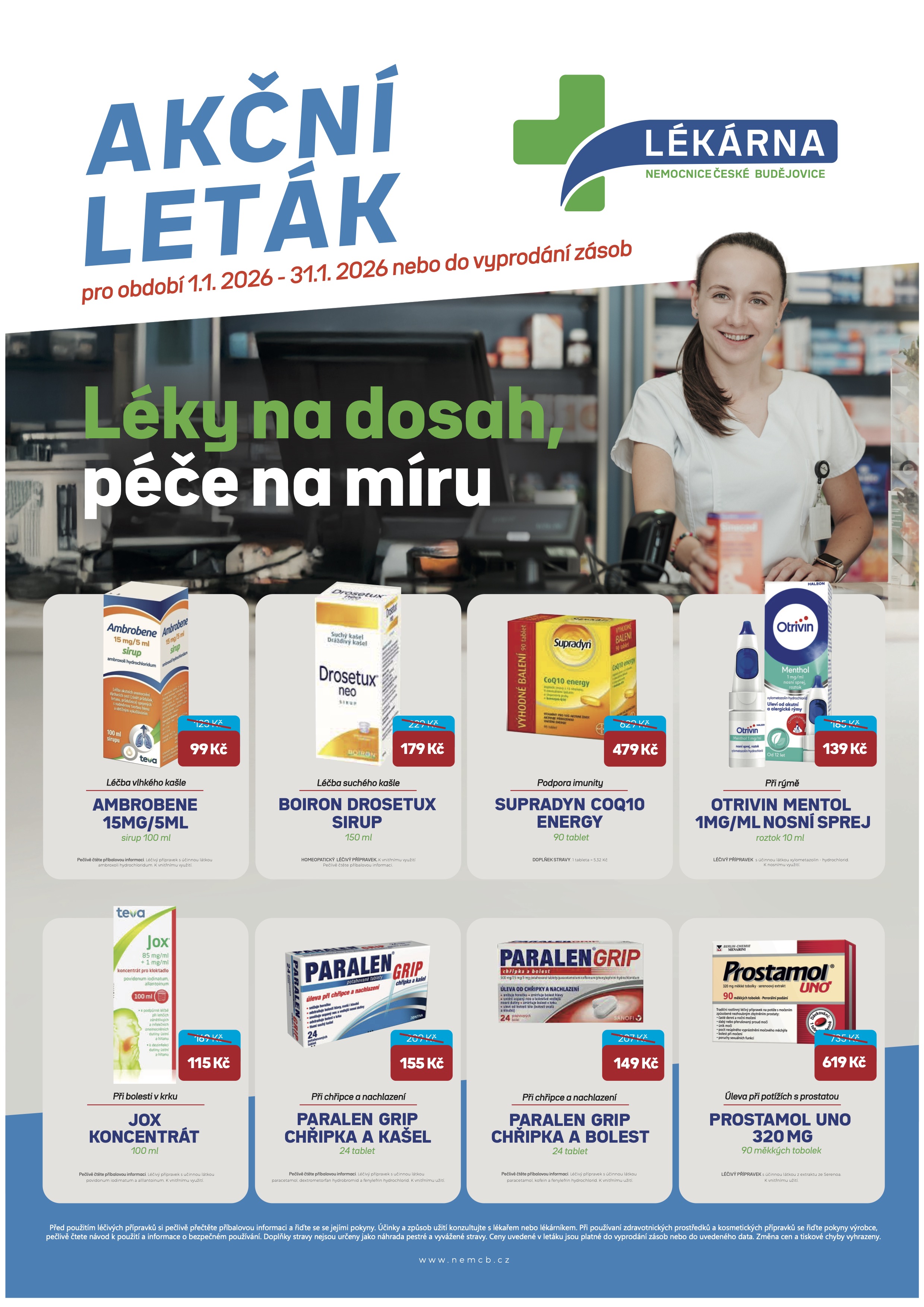 Lékárna Nemocnice České Budějovice pro Vás připravila akční leták plný zvýhodněných cen.