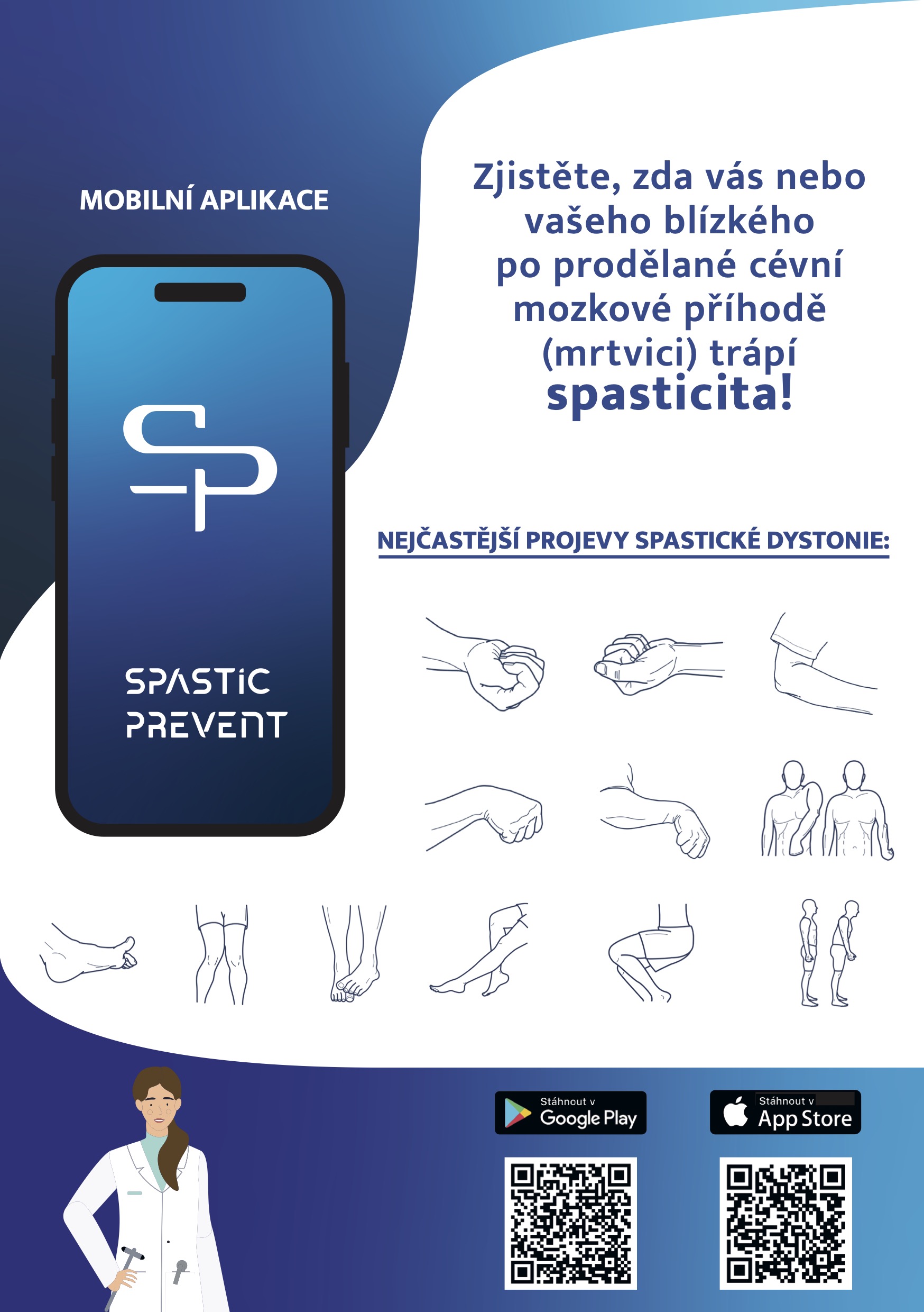 K VČASNÉMU ODHALENÍ SPASTICITY VÁM NYNÍ POMŮŽE APLIKACE SPASTIC PREVENT. Odborně jsme se podíleli na vývoji aplikace pro pacienty. Spastic Prevent je určena pro pacienty po mrtvici a jejich blízké. Aplikace slouží k časnému odhalení spasticity - léčitelného následku mozkové příhody. |