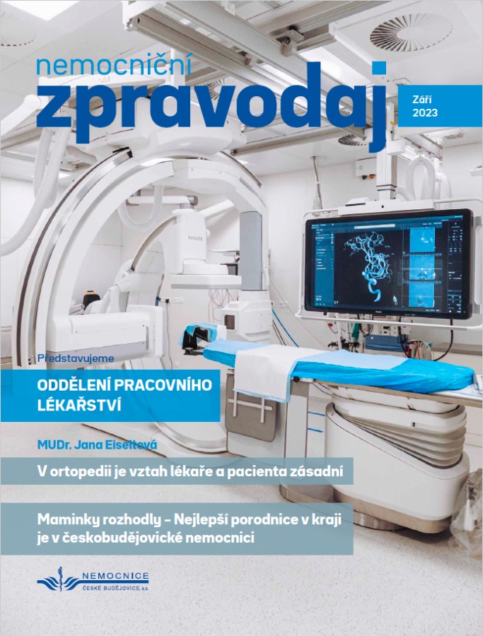 Po prázdninové pauze vám opět přinášíme novinky z českobudějovické nemocnice. V zářijovém čísle vám představíme Oddělení pracovního lékařství. Nabízíme rozhovor s výraznou postavou českobudějovické ortopedie MUDr. Janou Eiseltovou a začínající neurochirurgyní MUDr. Barborou Musilovou.